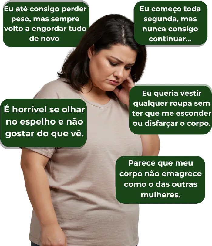 vai ganhando mais peso, se sentindo péssima e sofre
